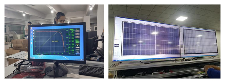 100% testing our solar panel.Both EL testing and electrical testing are important for ensuring the quality and performance of solar panels. By detecting defects and damage early on, repairs can be made before they become more serious and affect energy production. Additionally, electrical testing helps ensure that solar panels are operating efficiently and producing the maximum amount of energy possible.